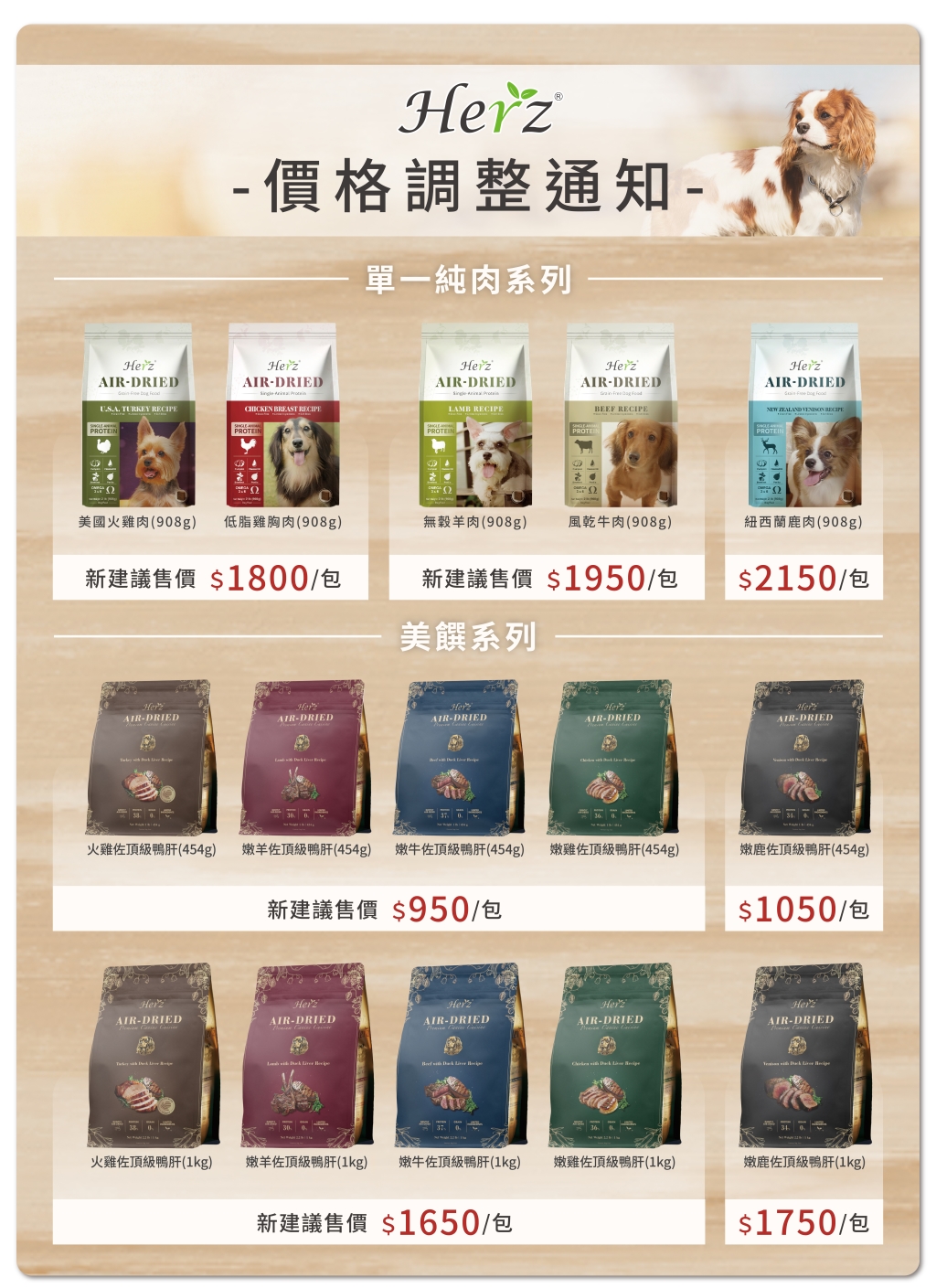 【官方公告】赫緻低溫風乾犬糧「調漲定價」說明
