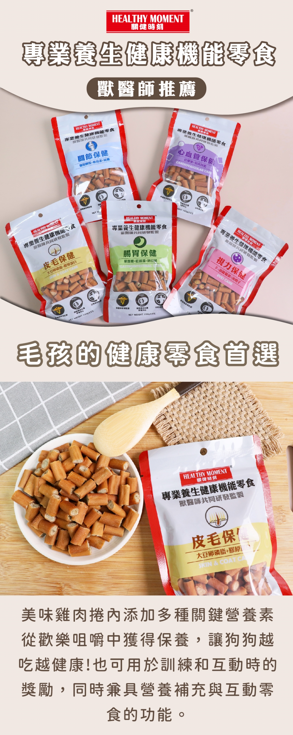 一般乾糧或罐頭只提供基本的營養需求,在日常的飲食中應適當地補充一些機能調理營養素,以幫助愛犬成長發育與增加自然抵抗力。專業養生健康機能零食可用於訓練和互動時的獎勵,同時兼具營養補充與互動零食的功能。